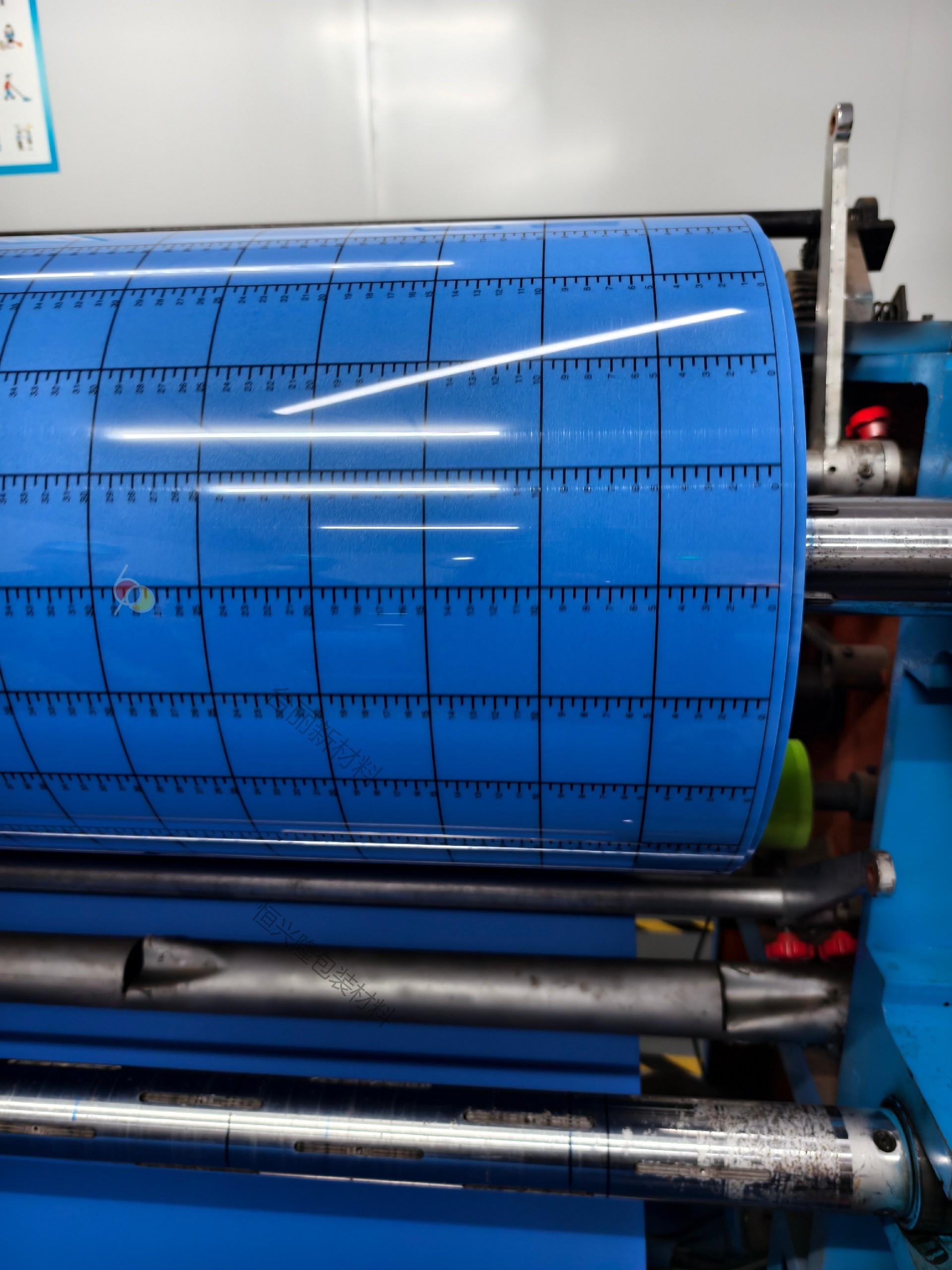 本实用新型涉及一种带有刻度标尺的柔印衬垫,属于印刷技术领域,包括衬垫本体,衬垫本体包括弹性层,胶粘层及底膜层,弹性层黏贴于胶粘层,胶粘层黏贴于底膜层,底膜层上铺设有刻度标尺,刻度标尺与底膜层为一体成型.本实用新型通过将刻度标尺与底膜层设置为一体形成带有刻度的衬垫,自身裁切方便,减少误差,适配不同尺寸的印版滚筒,与印版粘贴准确上版定位,对于无挂版配置的印刷机,同样可实现准确贴版,提高老旧印刷设备的生产效率与印刷品质.