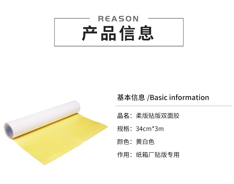 特别适用于纸箱厂、胶袋厂、编织袋厂及其它印刷行业粘贴及固定各种橡胶版、树脂版、柔性版、PS版、PET版、胶印、烫金、包装材 料粘合等,可重复多次使用,性能十分稳定。可以适应各气候和天气
