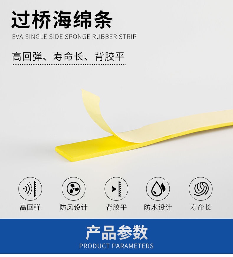 1.高回弹过桥海棉 快速回弹,使用寿命长,背胶平,是理想的模切伙伴。