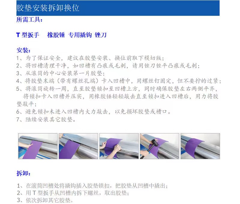 1、为了保证安全,建议在胶垫安装、换位前取下模切版;
